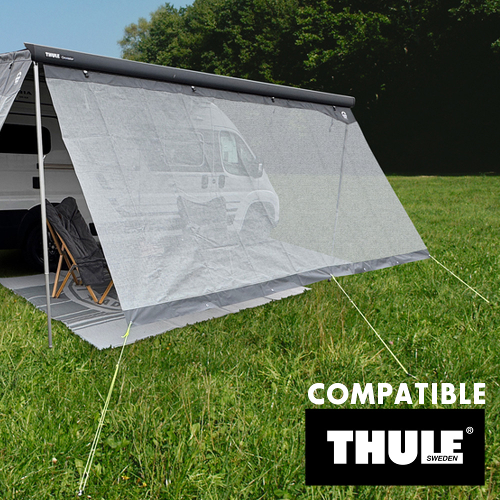 La façade de store SUN BLOCKER est conçue pour offrir une protection efficace contre le soleil tout en conservant luminosité et ventilation sous votre store de camping-car, caravane ou fourgon.
