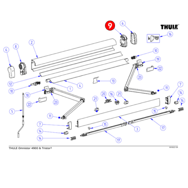 Embout droit de store 4900 THULE et TRISTOR Gris Camping-car Caravane