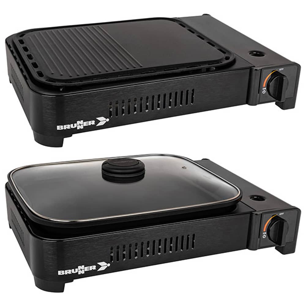 Réchaud gaz 1 feu, plaque mixte grill/plancha, sac de transport inclus