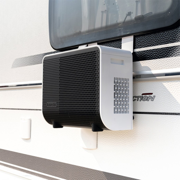 Composé de deux unités : un condenseur extérieur et un diffuseur intérieur - il s'installe facilement sans modification permanente du véhicule. Son support réglable pour fenêtre permet une fixation rapide, même fenêtre presque fermée.