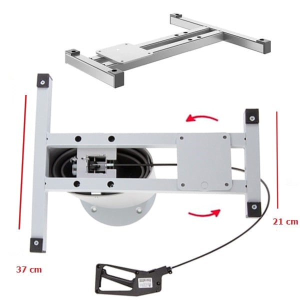 La montée et la descente du plateau de table s'effectue à l'aide d'unepoignéequi se fixe sous le plateau.Installer le cable sous le plateau avec un angle le plus large possible.