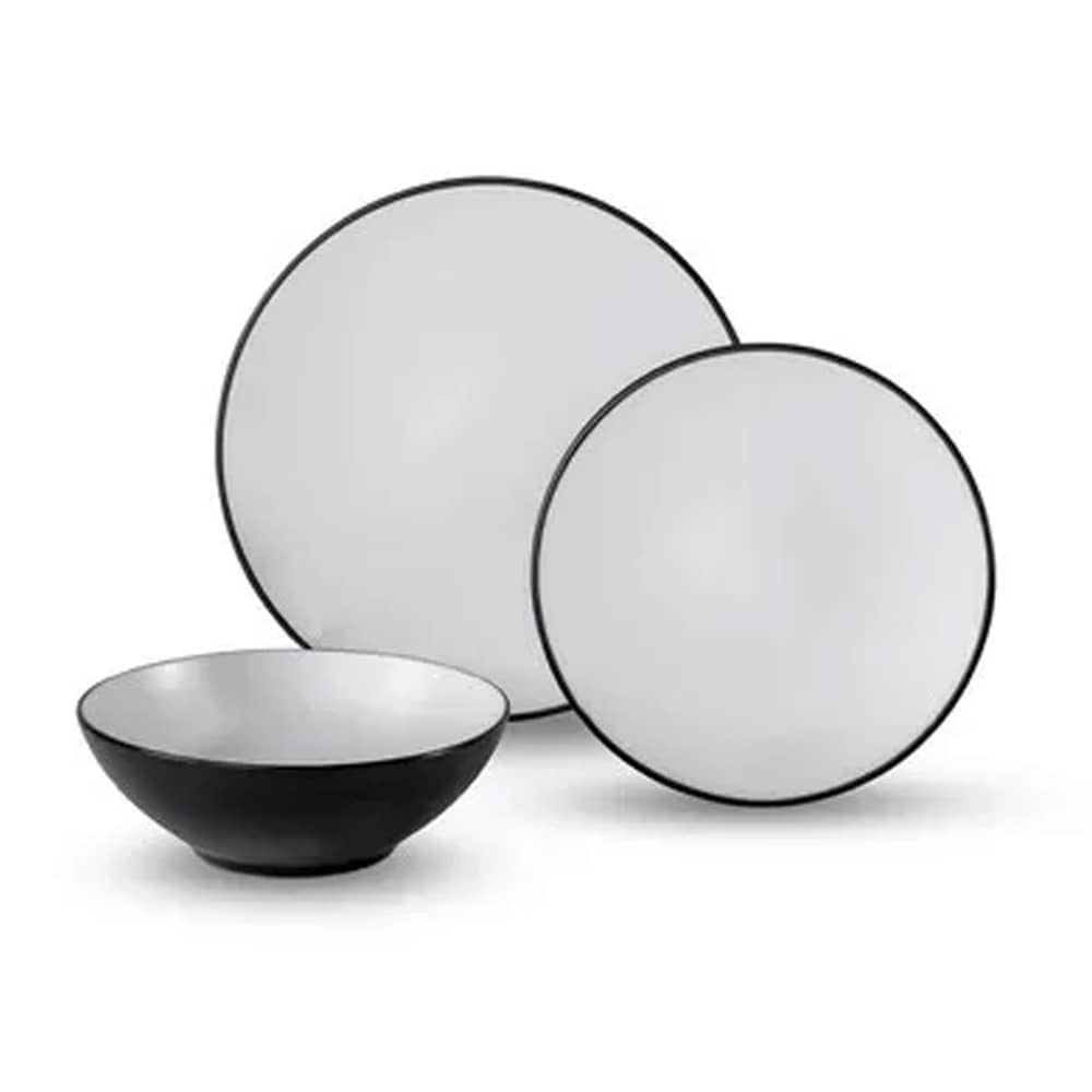 Lot vaisselle mélamine FJORD 6 pièces noir/blanc pour 2 personnes