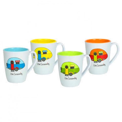 Lot de 4 grandes tasses LOVE CARAVANING 4 couleurs - Mugs en mélamine parfaits pour une utilisation en camping, camping-car, caravane, bateau...