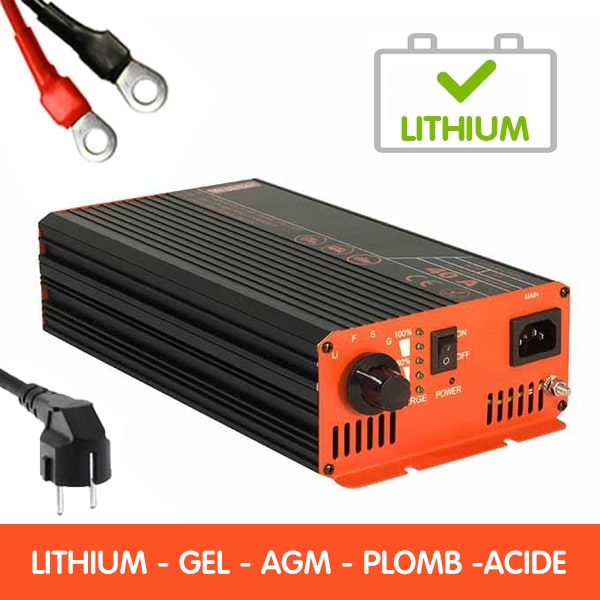 Le chargeur de batterie dernière génération 230V AC / 12V DC permet de recharger une batterie Lithium rapidement et en toute sécurité grâce à son découpage de charge en 3 phases (boost, absorption et entretien).
