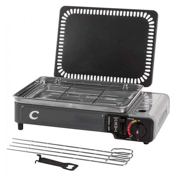 Réchaud à gaz portable avec grill et plancha, Idéal pour cuisiner de bons petits plats en plein air pendant vos vacances en camping-car, caravane, fourgon, bateau ...