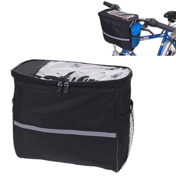 Sacoche noire 5L pour guidon de vélo. Large, fonctionnelle et réfléchissante, elle est idéale pour ranger tout vos effets personnels lors de vos balades ou courses à vélo.