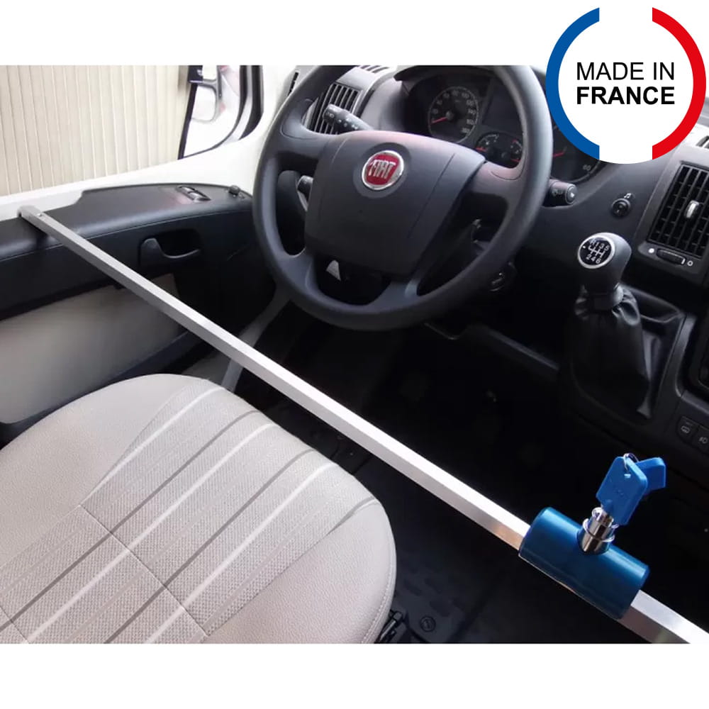 Conçue pour les camping-cars et fourgons aménagés basés sur Fiat Ducato, Peugeot Boxer, Citroën Jumper ou encore Renault Master et Mercedes Sprinter, cette barre antivol bloque physiquement l'ouverture des portières avant.