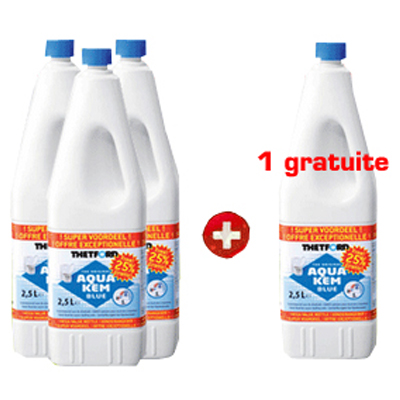 Aqua Kem Blue 2,5 litres au lieu de 2 litres soit 25% de produit GRATUIT : Puissant additif sanitaire pour l’utilisation quotidienne. D’une odeur fraîche et agréable, cet additif sanitaire populaire a une durée d’action de quatre à cinq jours dans le cadre d’une utilisation moyenne. Même en cas de gel, Aqua Kem Blue retrouve toute son efficacité après avoir dégelé.