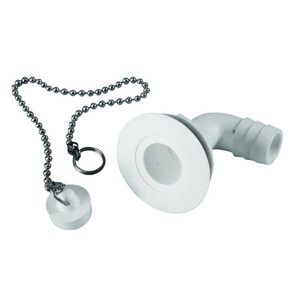 Bonde coudée 90° avec bouchon et chaînette - sortie 19 mm - perçage 25 mm