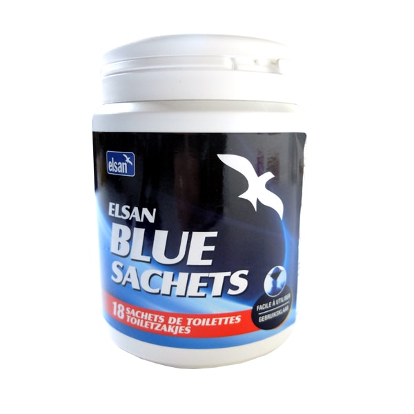 Produit pour WC chimique et cassette : ELSAN BLUE 18 SACHETS - 18 sachets hydrosolubles, facile à utiliser pour le réservoir à matières des toilettes chimiques ou vos cassettes.